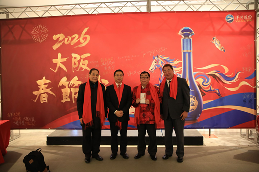 ▲刘铭义(左一)与2026大阪春节祭执行委员会委员长齐振宇(左二)、名誉委员长张永胜(右二),广岛华商会会长、广岛春节祭执行委员会委员长孙明(右一)合影留念