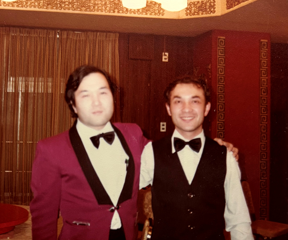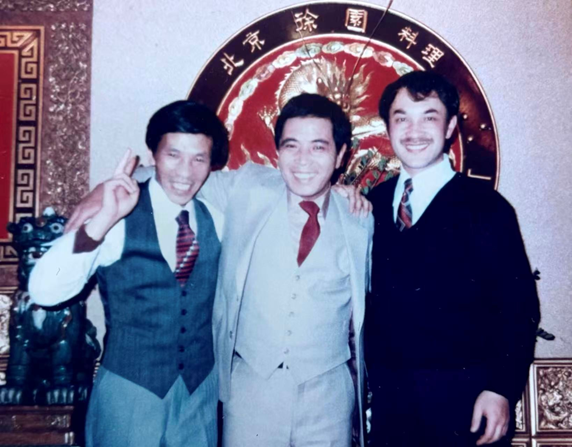 ▲本文作者(右)当年在中华料理店做服务生时与同事合影(1983年11月)