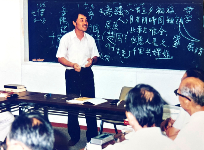 ▲本文作者(站立者)在大阪“中国语文学院”教汉语(1984年8月)