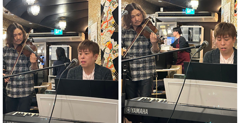 1月25日晚,他们出现在位于日本大阪道顿堀的「缘」餐厅,为50余位中日听众献上了近10首经典或原创音乐,令大家如痴如醉,更在每一曲演奏结束后,毫不吝啬地用掌声一次次表达喜爱!这就是由「缘」餐厅举办的“迎接春节音乐晚餐会”上,展现的一幕幕精彩瞬间。