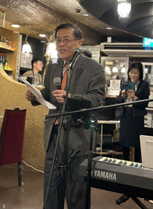 本次“音乐晚餐会”也是一次中日民间友好交流的聚会。演奏者之一的石井健太郎,几乎每个月都被邀请去中国演出,他的太太是专业中文翻译,太太的父亲坂田先生作为日语专家曾在中国大连外国语大学任教三年。他们一家,堪称名符其实的“日中友好之家”;来宾当中的前京都外国语大学中文系系主任竹内教授的太太,还亲自登场,以娴熟的技艺表演了源自日本江户时代的传统街头表演“南京玉帘”(日语:南京玉すだれ/なんきんたますだれ);而另一位,大阪上海同乡会副会长叶盛高桥邀请一起来参加晚会的日本客人小野修平则以熟练的中文告诉“东瀛新视野”,他从1976年10月25日第一次去中国旅行开始,40多年来去过中国不下400次,走过了中国的大江南北,包括新疆、西藏、内蒙古、云南,等等,留下了很多珍贵的照片,对中国大美风景和人文历史风情赞叹不已。客人中的日本爵士女歌手溝渕直美为活跃气氛,还现场献唱了一首歌曲。