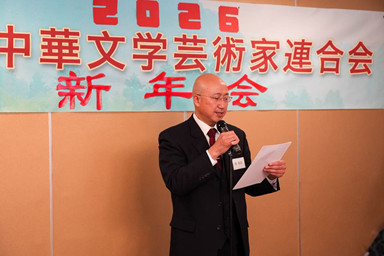 1月11日下午,2026日本中华文学艺术家连合会新年会在位于大阪天王寺的中华料理枫林阁隆重举行。日本中华文学艺术家连合会现任会长叶卫阳致辞并作连合会年度报告,其他致辞嘉宾还包括:京都万福寺总务总长荒木将旭、西日本华侨华人协会会长毕广军、大阪中秋明月祭执行委员长王天佐。中国驻大阪总领事馆副总领事魏有美也专程前来并代为宣读了薛剑总领事的贺词。此外,日本中华文学艺术家连合会名誉会长陈允陆、谢春林,副会长张述洲(原神户中华同文学校校长)、白雪梅,新成立的连合会艺术促进后援会会长田露,以及日本中华文学艺术家连合会全体理事、会员及关西地区部分知名艺术家、知名侨领、华人华侨企业家、华文媒体等各界代表60余人参加了活动。西日本华人网、“东瀛新视野”副总编蒋邵艳也应邀参加活动。新年会由现任日本中华文学艺术家连合会事务局长、新任会长傅巍主持。