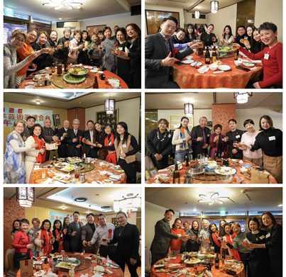 晚宴环节,新年会还为来宾们准备了丰盛、美味的中、西式料理,名誉会长谢春林代表日本中华文学艺术家连合会致祝酒词:为即将到来的中国农历春节、为美好的明天干杯!