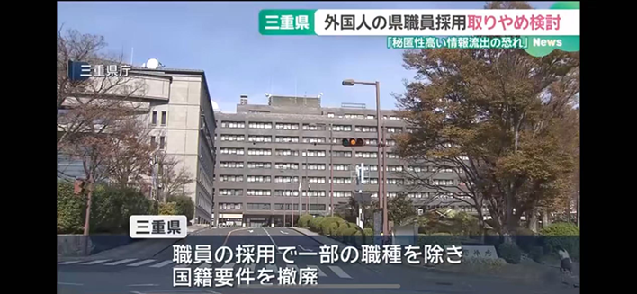 日本三重县拟恢复国籍限制、停止招聘外籍县职员!