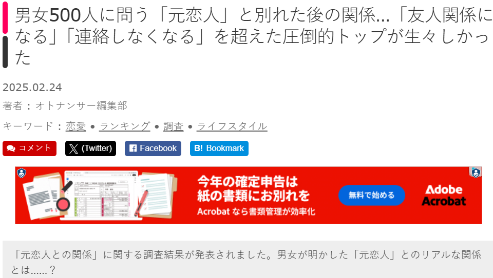 分手后与前任的关系,看看接受调查的500名日本男女如何回答?