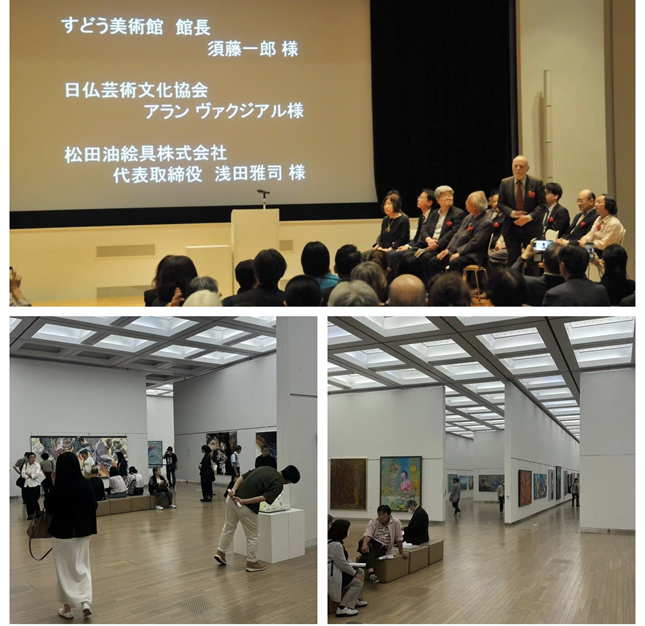 东京国立新美术馆,是建筑家黒川纪章先生生前最后完成的日本最大级美术馆,每年都会画举办展的受赏式和酒会。今年也一样,现代艺术家协会代表、各大美术馆的馆长、欧洲的美术馆代表及美术评论家分别会给予祝贺和致词——真田惠奈说:每次在东京参加这样大型的画展,真的开心又激动。
