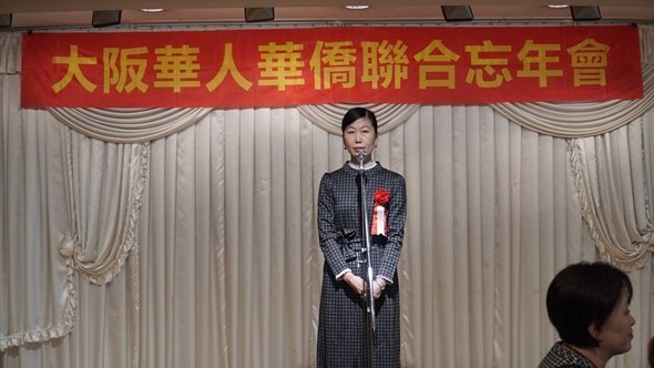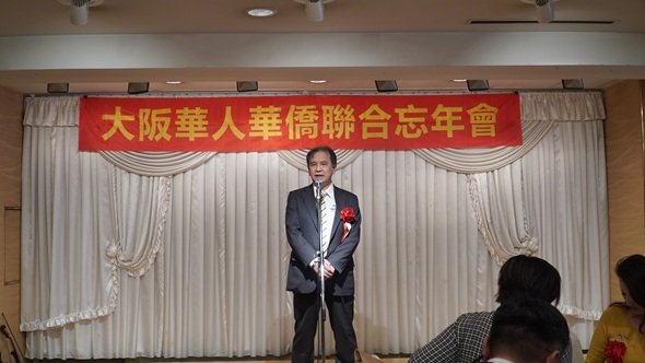出生在日本的大阪华侨总会会长赵知理在简短的致辞中,以小时候听到周围人说“中国很穷”的感受到如今亲眼目睹、见证中国的强大作为对比,表达了不忘记自己是中国人,坚持梦想,相信中国、相信未来的真情实感;关西西南同乡会会长李建华在致辞中,表达了对本次忘年会活动的祝贺,以及对生活、工作在大阪的华人华侨的美好祝愿。