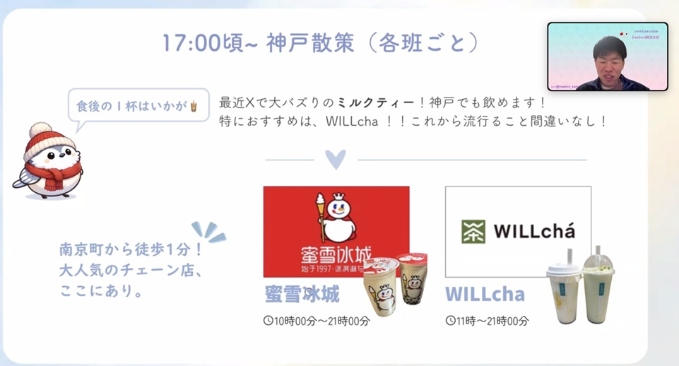 ▲在线说明会上介绍南京町周边推荐景点的场景
